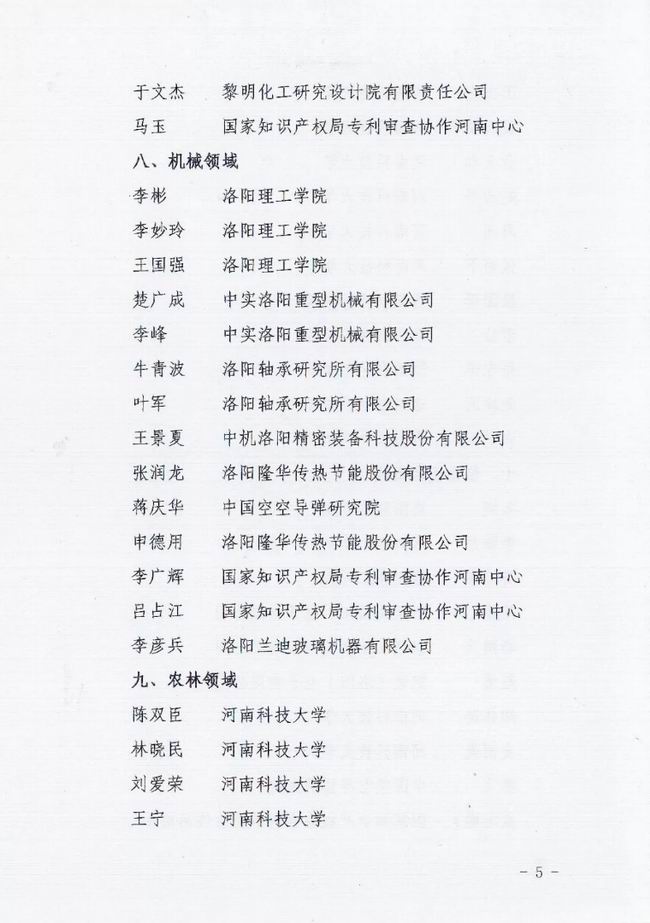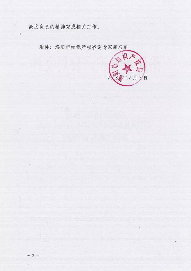 根據(jù)洛陽市知識產權局于2018年12月3日發(fā)布的《洛陽市知識產權局關于公布洛陽市知識產權咨詢專家?guī)烊脒x專家名單的通知》(洛市知【2018】33號),中機洛陽精密裝備科技股份有限公司總經理王景夏先生,入選為專家?guī)斐蓡T。
